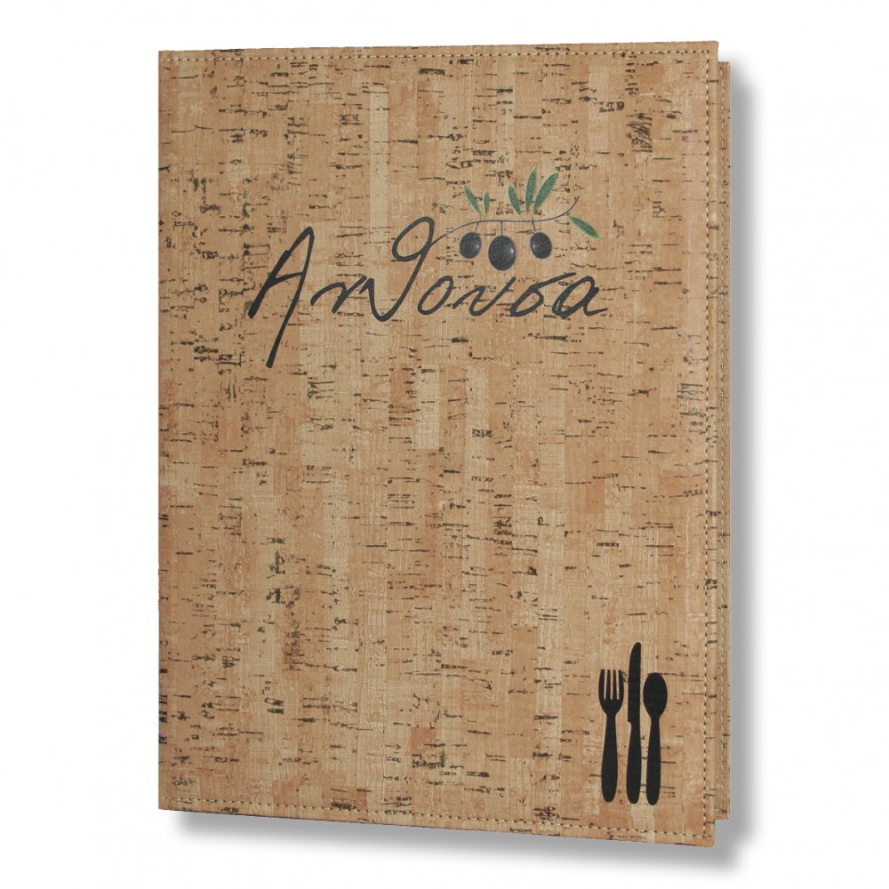 Κατάλογος μενού Cork, παραπέμπει στην όψη αλλά και στην υφή του φελλούΙδανικός για πυρογραφία αλλά κ..