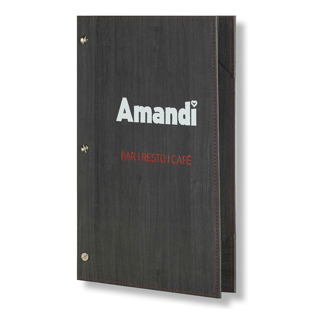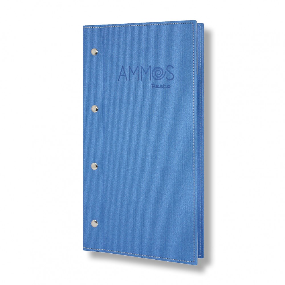 Μενού εστιατορίου με εξωτερικές βίδες Με πίκμανση στο εξώφυλλο για τέλειο άνοιγμα των φύλλων&n..