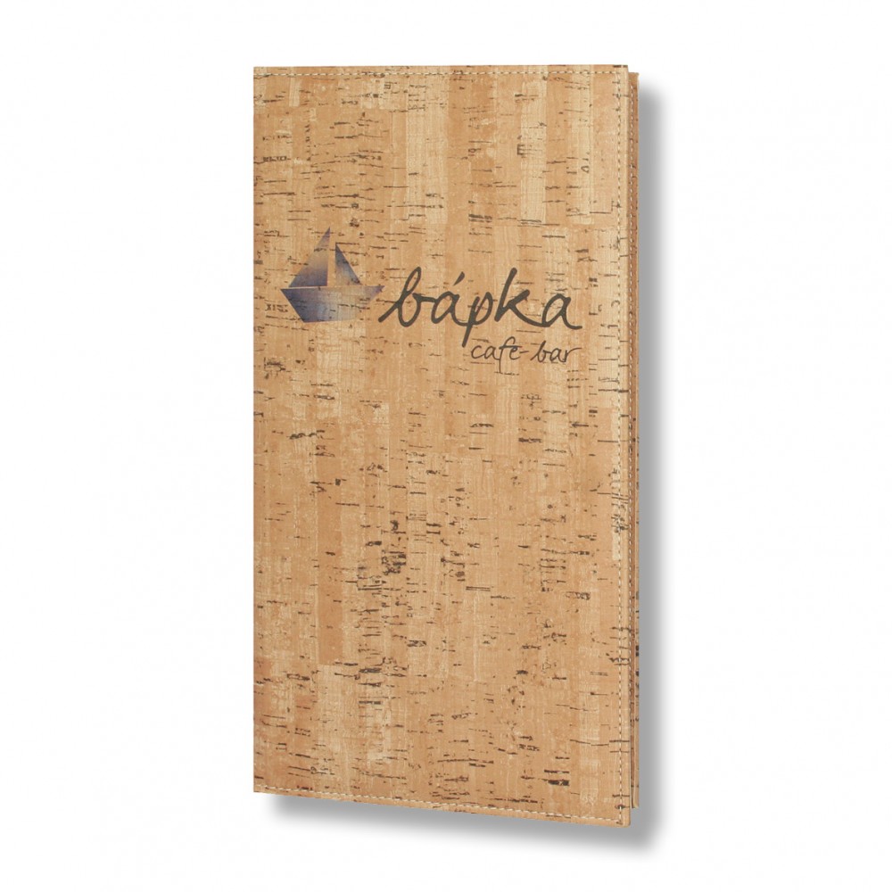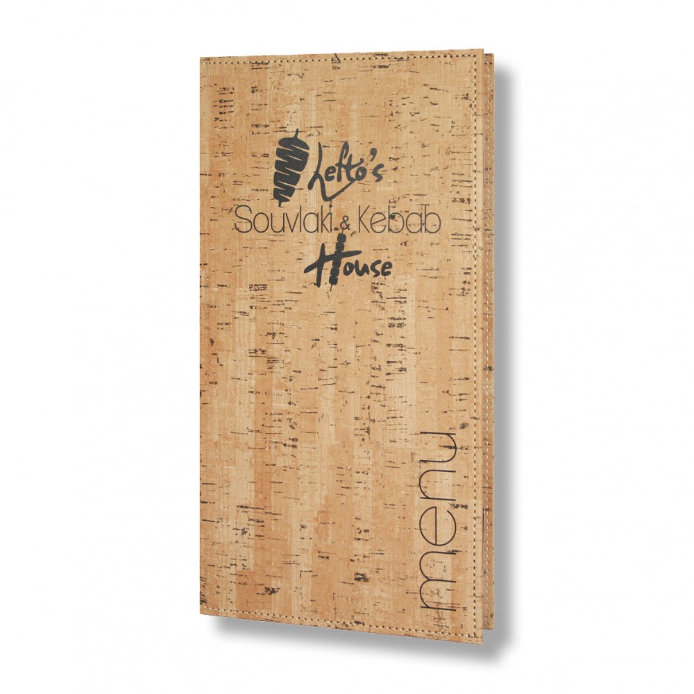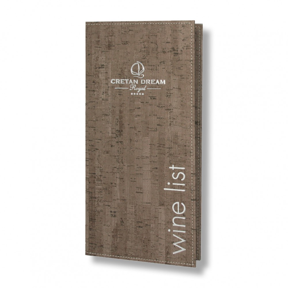 Κατάλογος εστιατορίου Cork, παραπέμπει στην όψη αλλά και στην υφή του φελλού Ιδανικός για πυρογραφία..