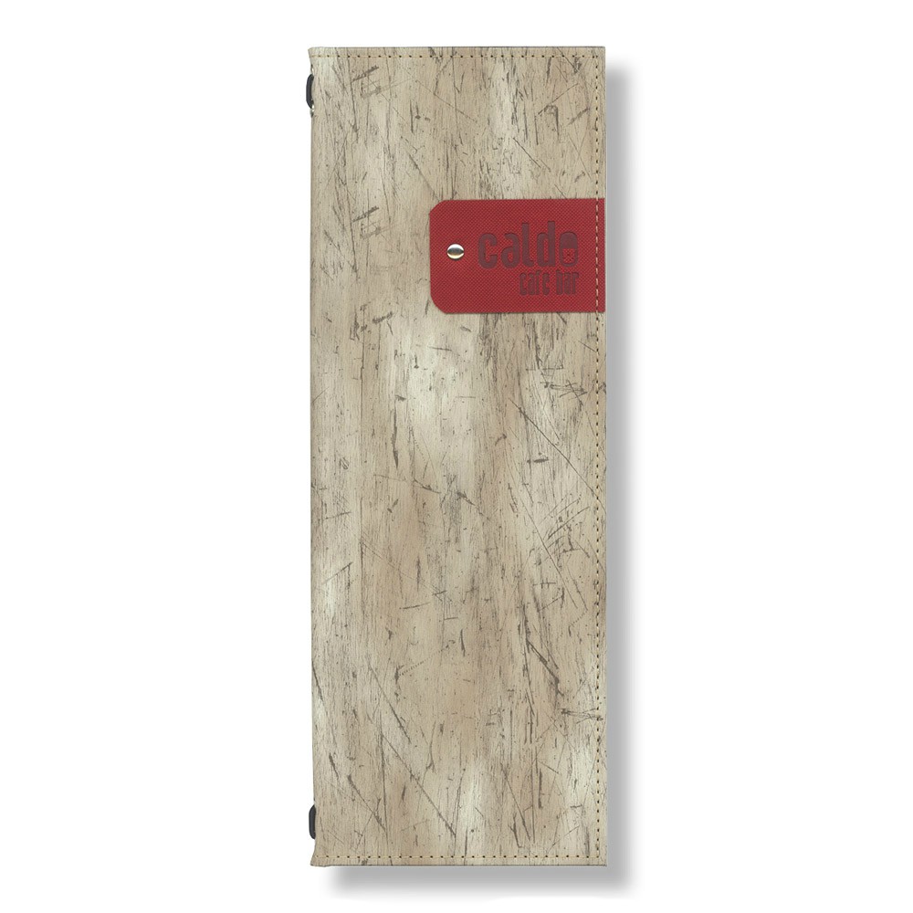 Μενού εστιατορίου Artemis Leather-Tab, με δερμάτινη ετικέτα Η λεπτομέρεια της δερμάτινης ετικέτας δί..