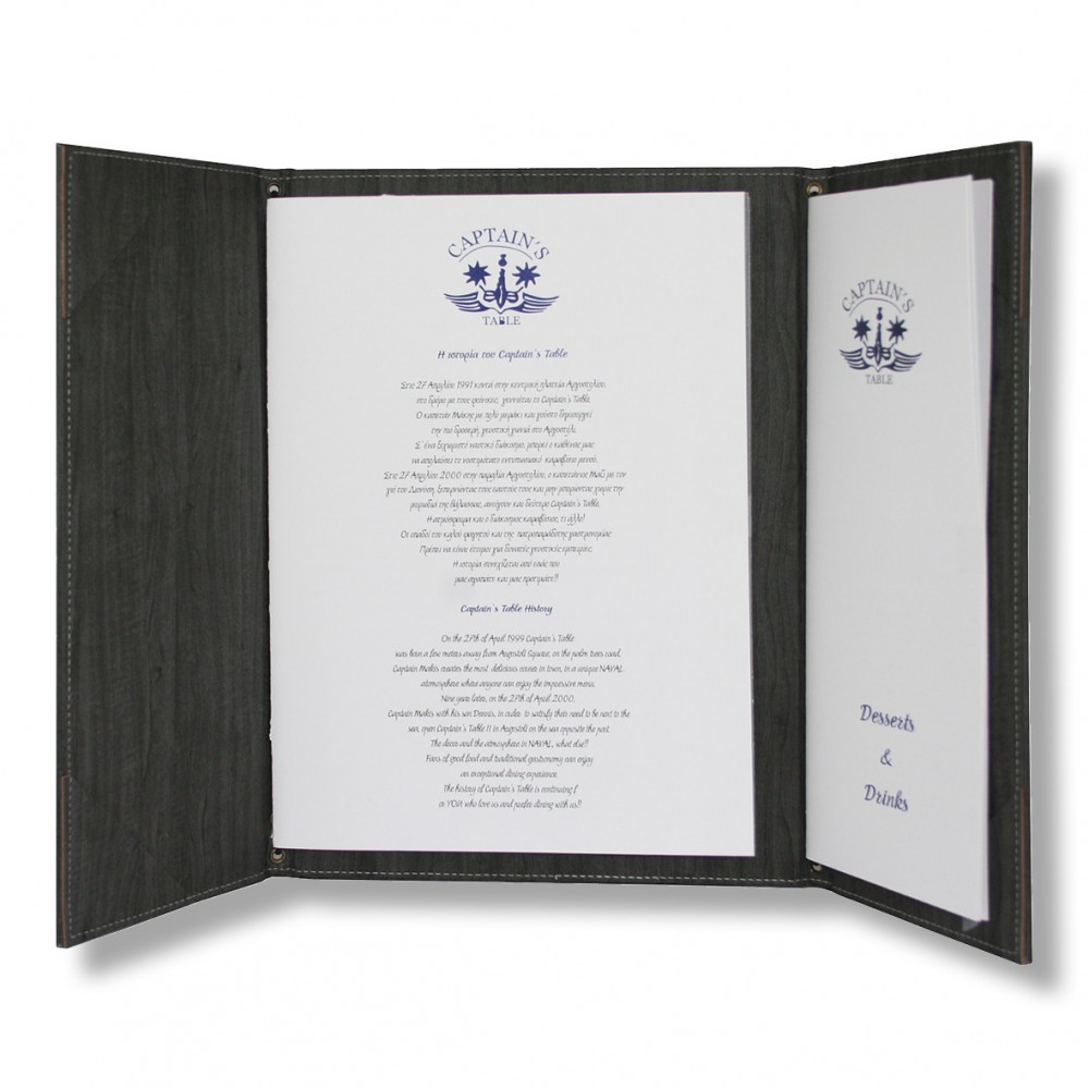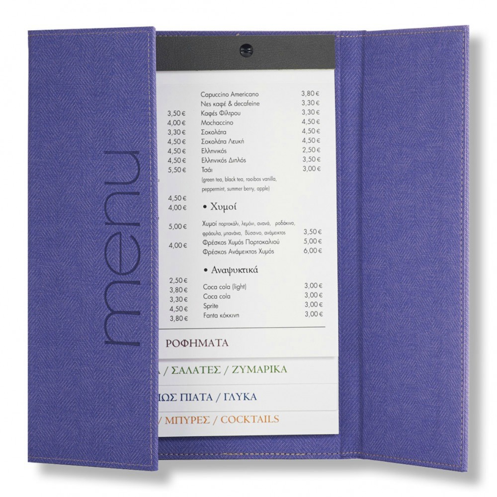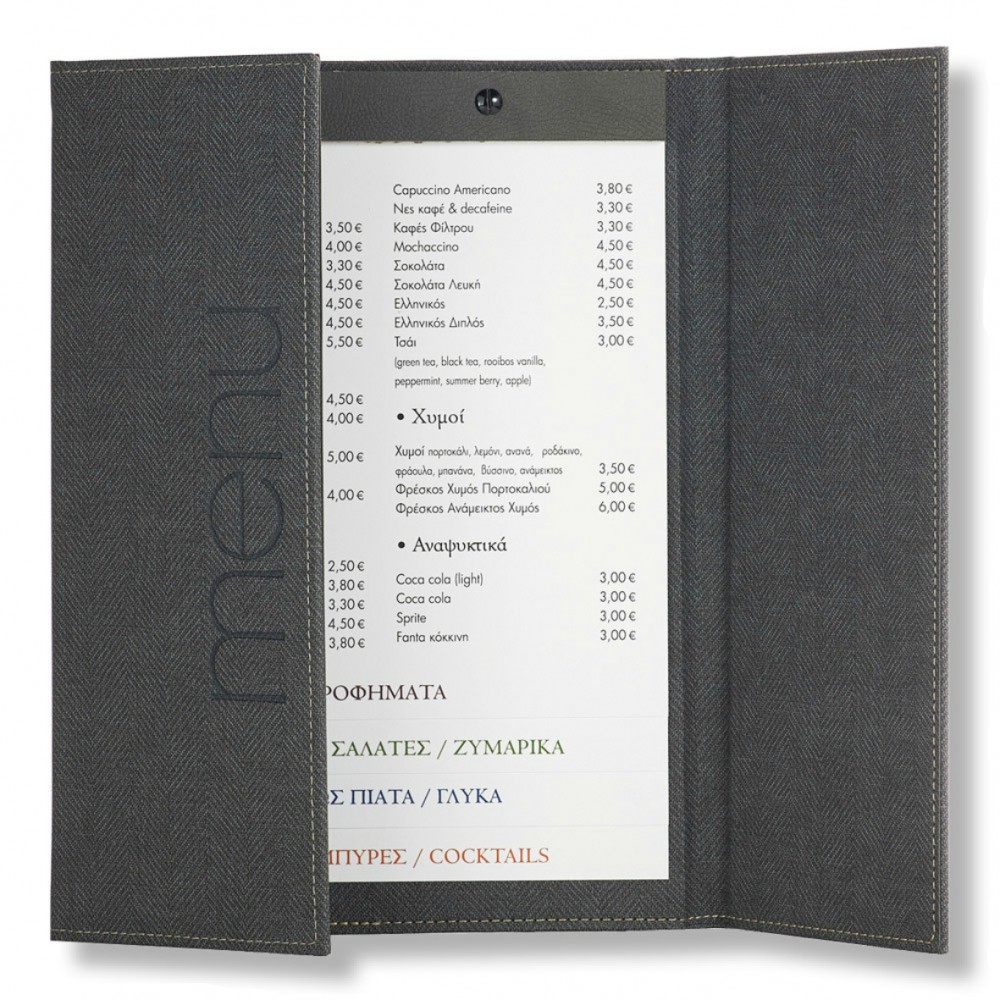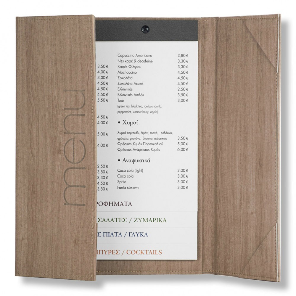 Μενού εστιατορίου 2fold, δίπτυχο για τοποθέτηση 2 σελίδωνΚατασκευή με γωνίες για εύκολη προσθαφαίρεσ..