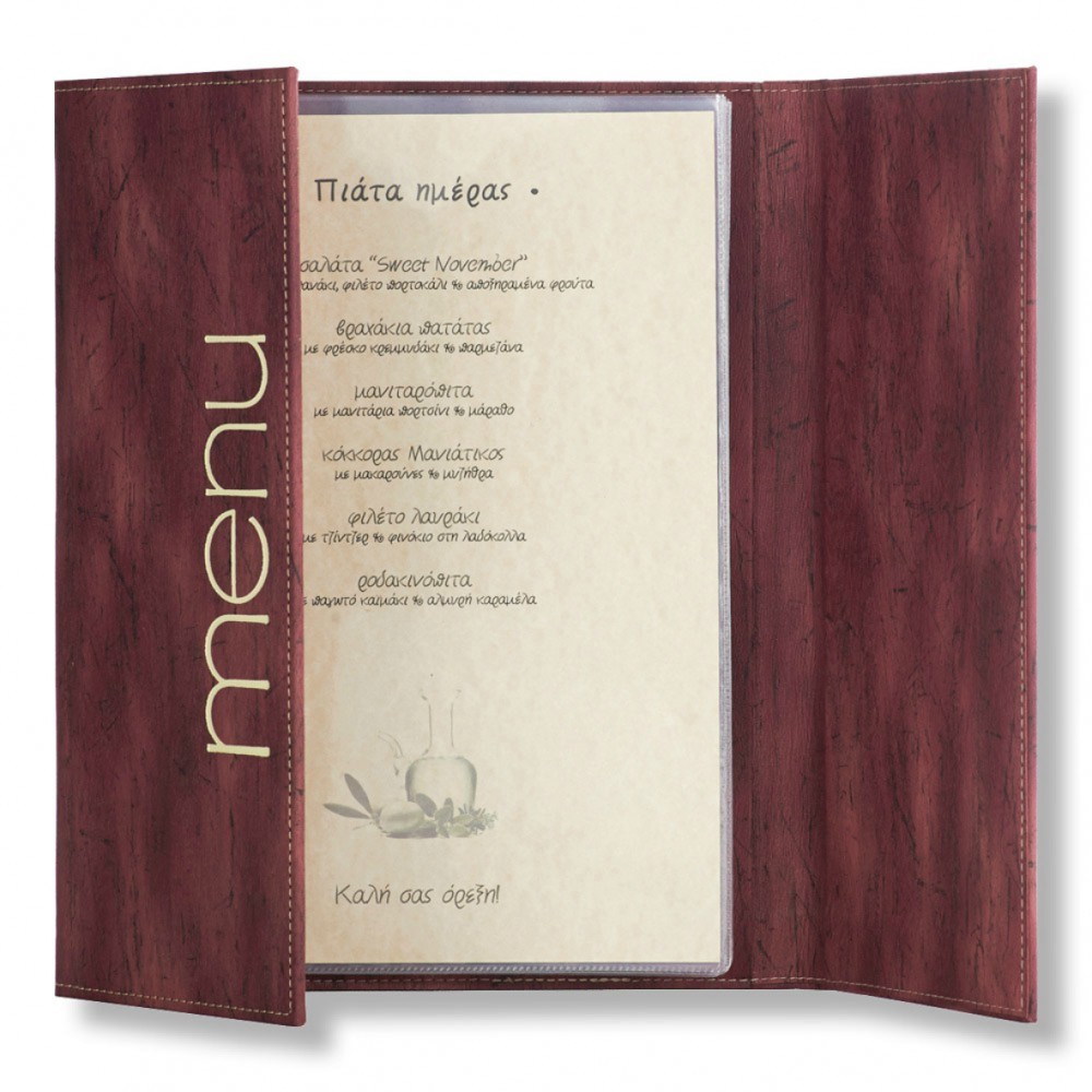 Μενού εστιατορίου 3fold, τρίπτυχο για τοποθέτηση 3 σελίδων Κατασκευή με γωνίες για εύκολη προσθαφαί..